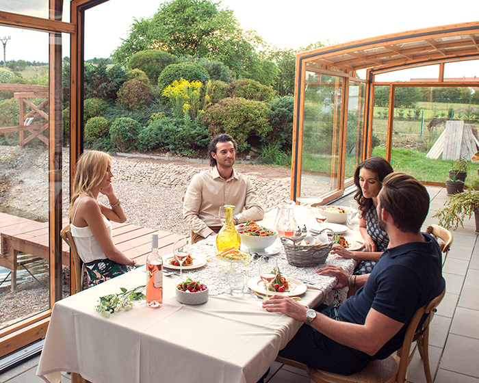 Wanneer u uw overkapping sluit wordt u beschermd tegen wind en regen, maar kan u nog steeds genieten van uw tuin.